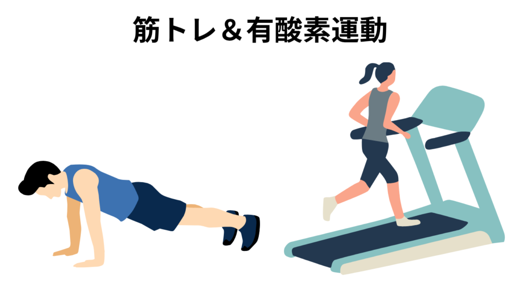 週2~3回、スクワットなどの大きな筋肉を使う筋トレと、30分程度のウォーキングやジョギングなどの有酸素運動を組み合わせるのがおすすめです。