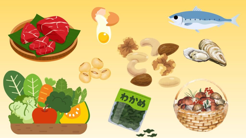 テストステロン合成に関わる亜鉛(牡蠣、赤身肉、ナッツ類)やビタミンD(きのこ類、日光浴)、マグネシウム(ナッツ、海藻、緑黄色野菜)などを意識して摂取することも大切です。