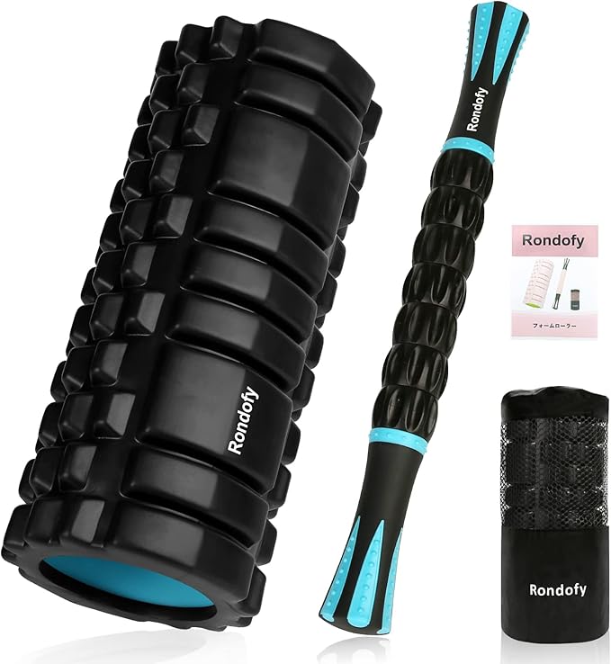 Rondofy フォームローラー セットは、滑らかな突起と鋭い突起を使い分けられ、部位ごとに刺激の強さを調整可能。太ももや背中をしっかりほぐせるほか、付属のマッサージローラーで肩や腕、足裏までケアできます。硬めで痛みを感じる人もいるため、強刺激が好きな方におすすめ。