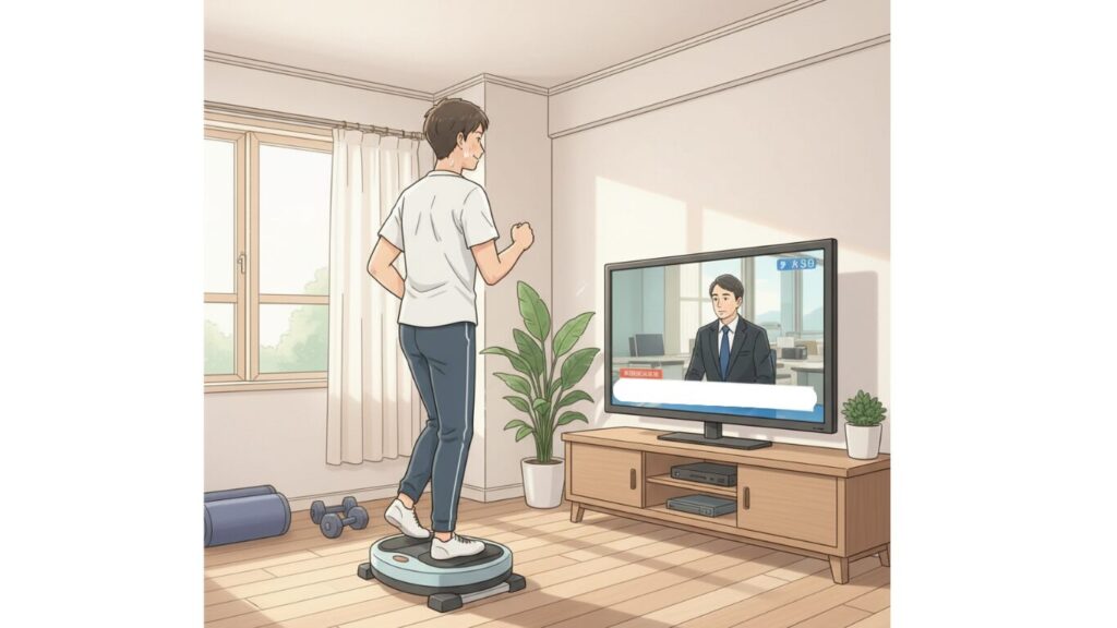仕事終わりや休日、わざわざ外に出なくても、テレビを見ながら・音楽を聴きながら快適に運動を続けられるのが大きな魅力です。